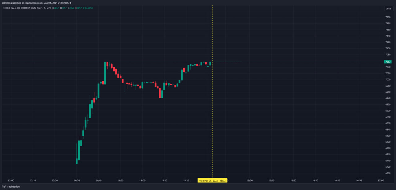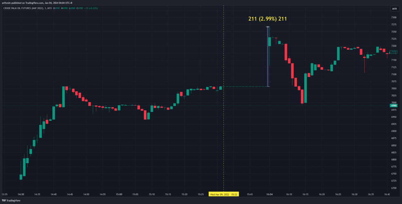 Contoh di atas adalah ketika FCPO hit Limit Up pada March 2022.