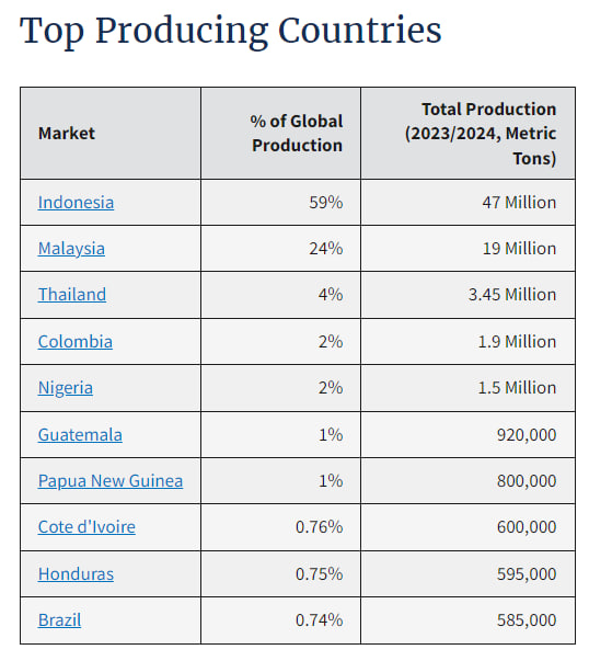 Dan Indonesia mendominasi sehingga ~55-60% daripada perdagangan CPO di dunia.