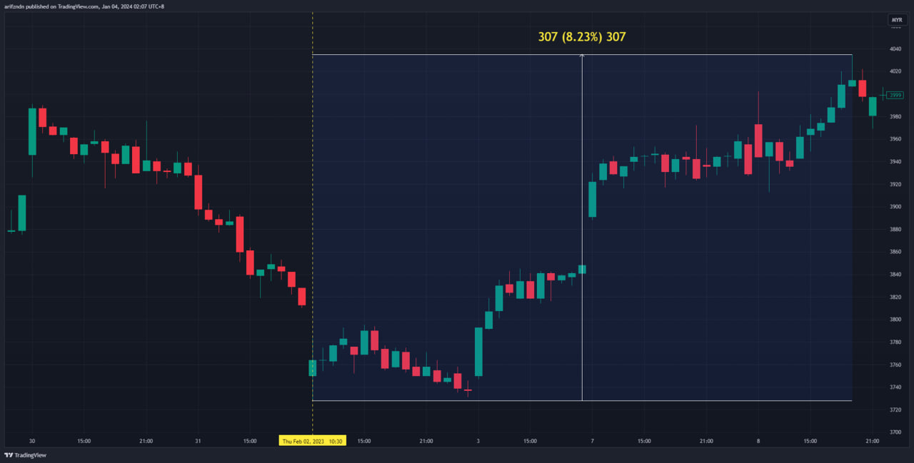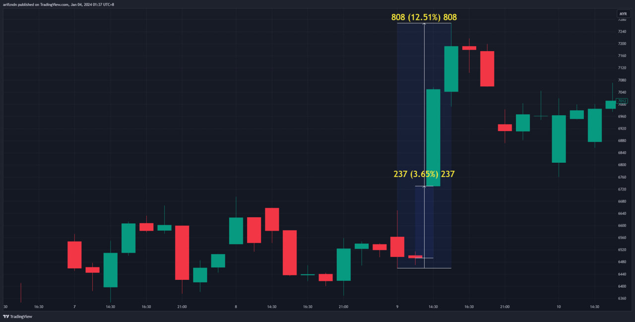 Gara-gara polisi dinaikkan daripada 20% kepada 30%, market gap up sehingga 237 ticks dan bullish sehingga 808 ticks!