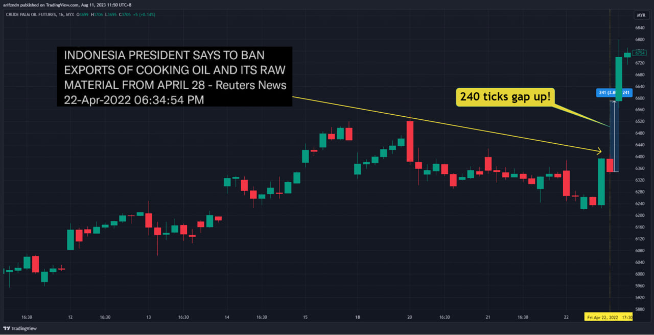 Semasa keluar berita CPO export telah di ban oleh Indonesia, market react dengan sangat agresif.