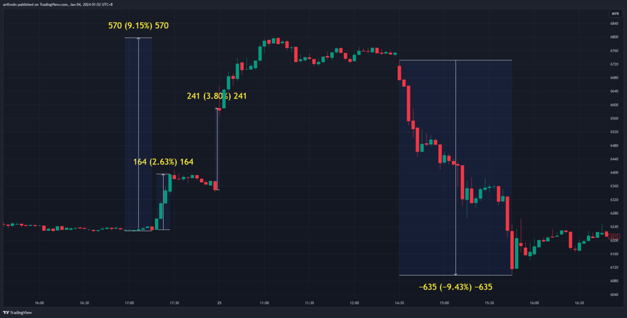 570 ticks naik dan turun 635 ticks turun dalam masa 1 hari!