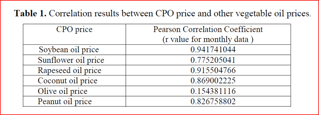 Rumusan penting di atas adalah menunjukkan bahawa CPO mempunyai hubungkait rapat dengan vegetable oils yang lain.