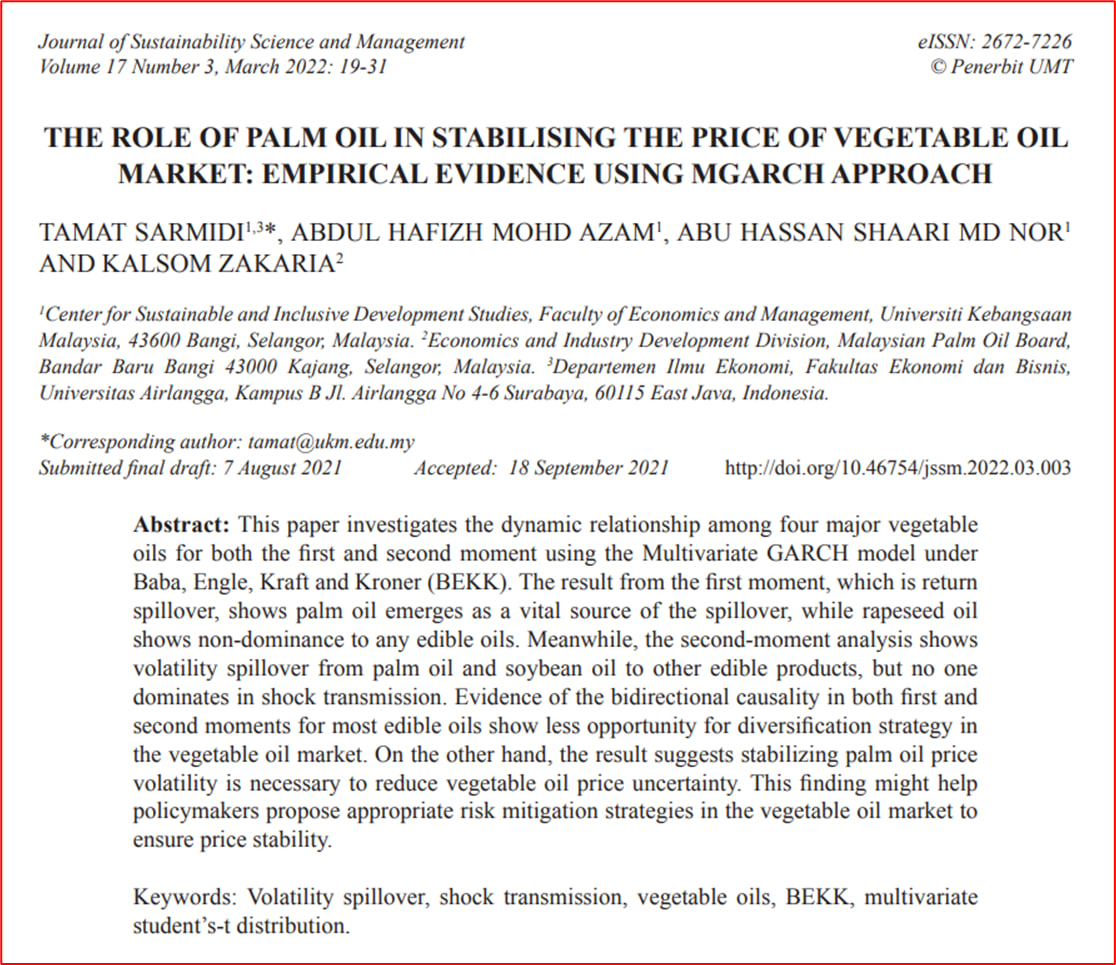 Hubungan antara FCPO dan vegetable oils yang lain juga adalah topik yang kerap dikaji di universiti dan researchers daripada MPOB, sejak 30 tahun dahulu sehingga sekarang.